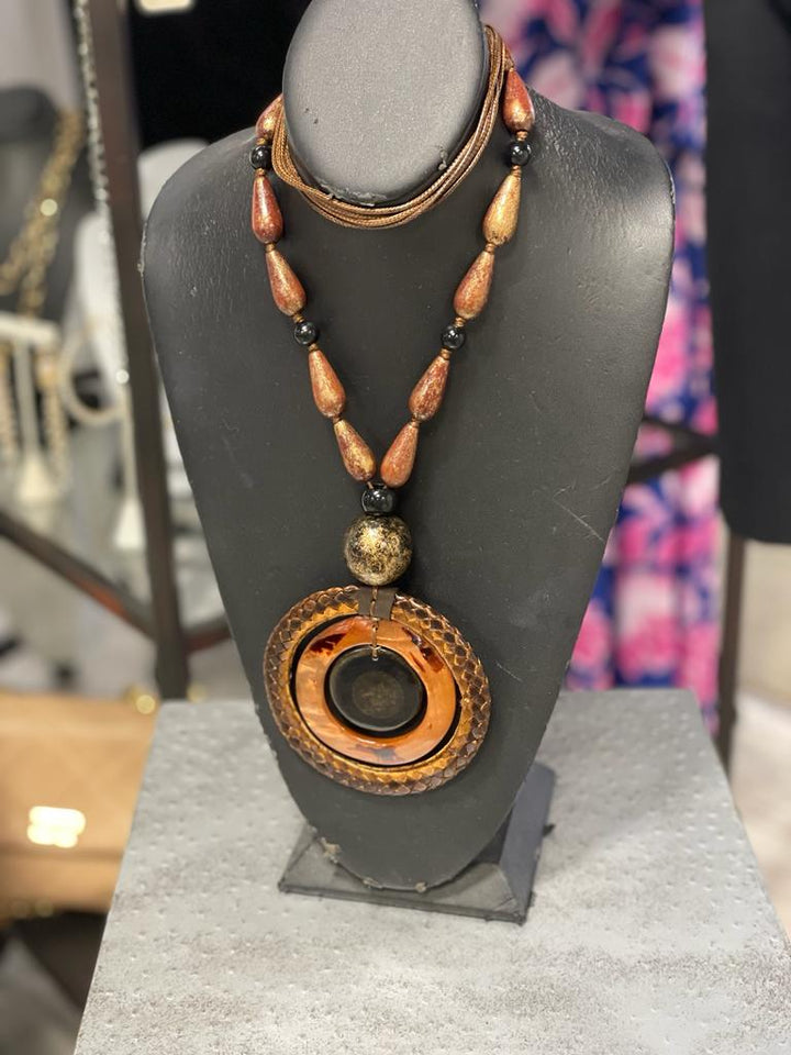 Reviews for "Burnt Orange Metal Concentric Necklace"