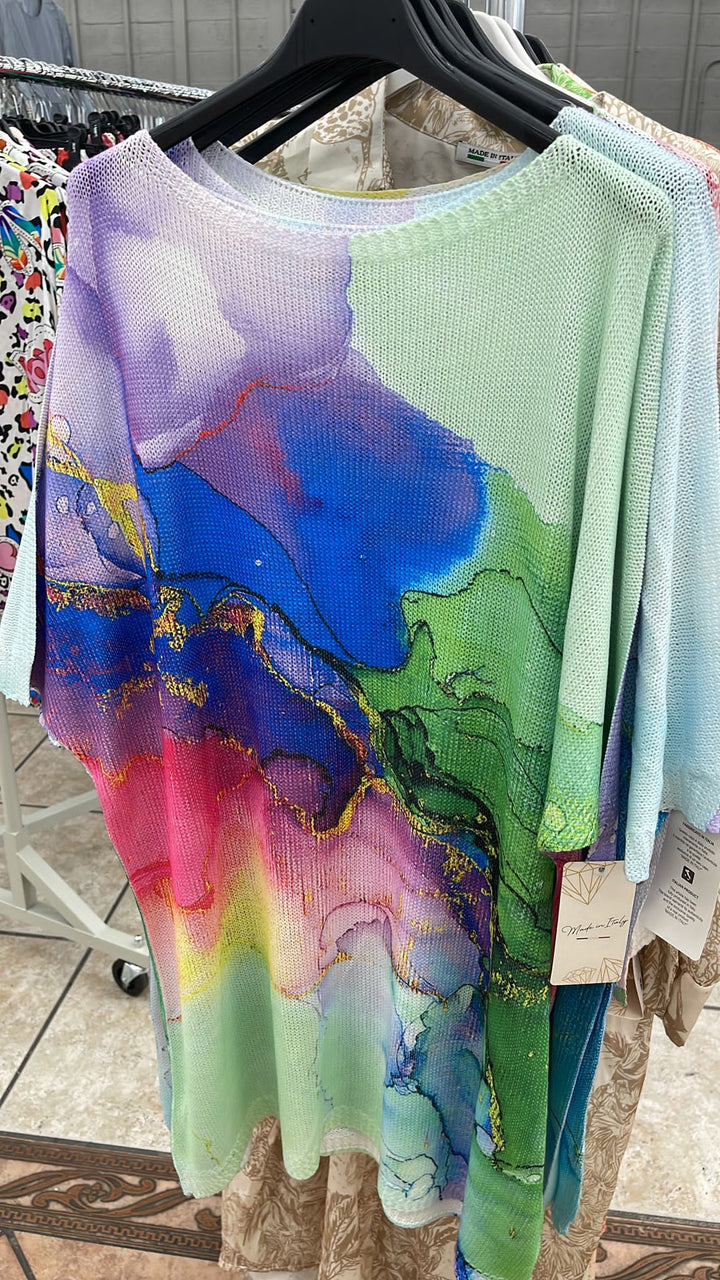 This shirt is made from a vibrant, marble-patterned fabric for a beautiful and unique look. It's soft and comfortable construction ensures ease of wear and user satisfaction.