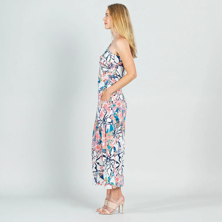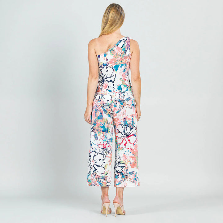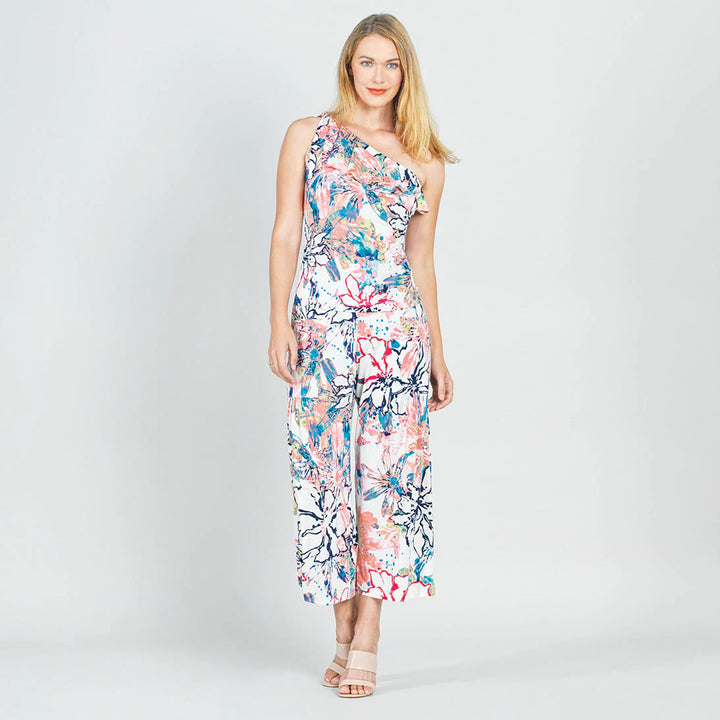 Color yourself pretty, by wearing the Water Floral Ribbon One Shoulder Ruffle Neckline Top! This style features a ruffled, asymmetrical neckline created by a sleek, one-shoulder, bra-friendly strap which displays a charming, ribbon-tie detail, and a straight hemline.